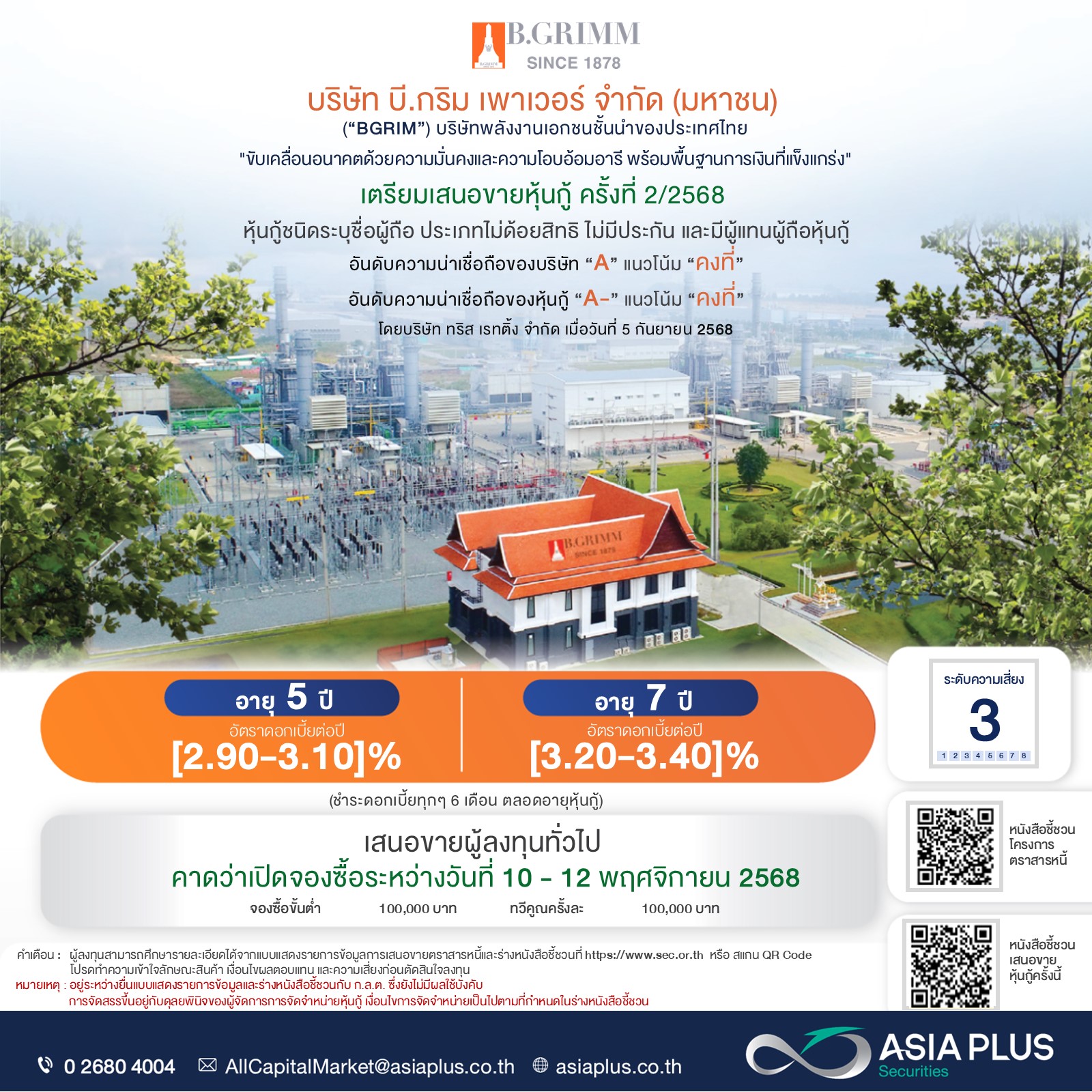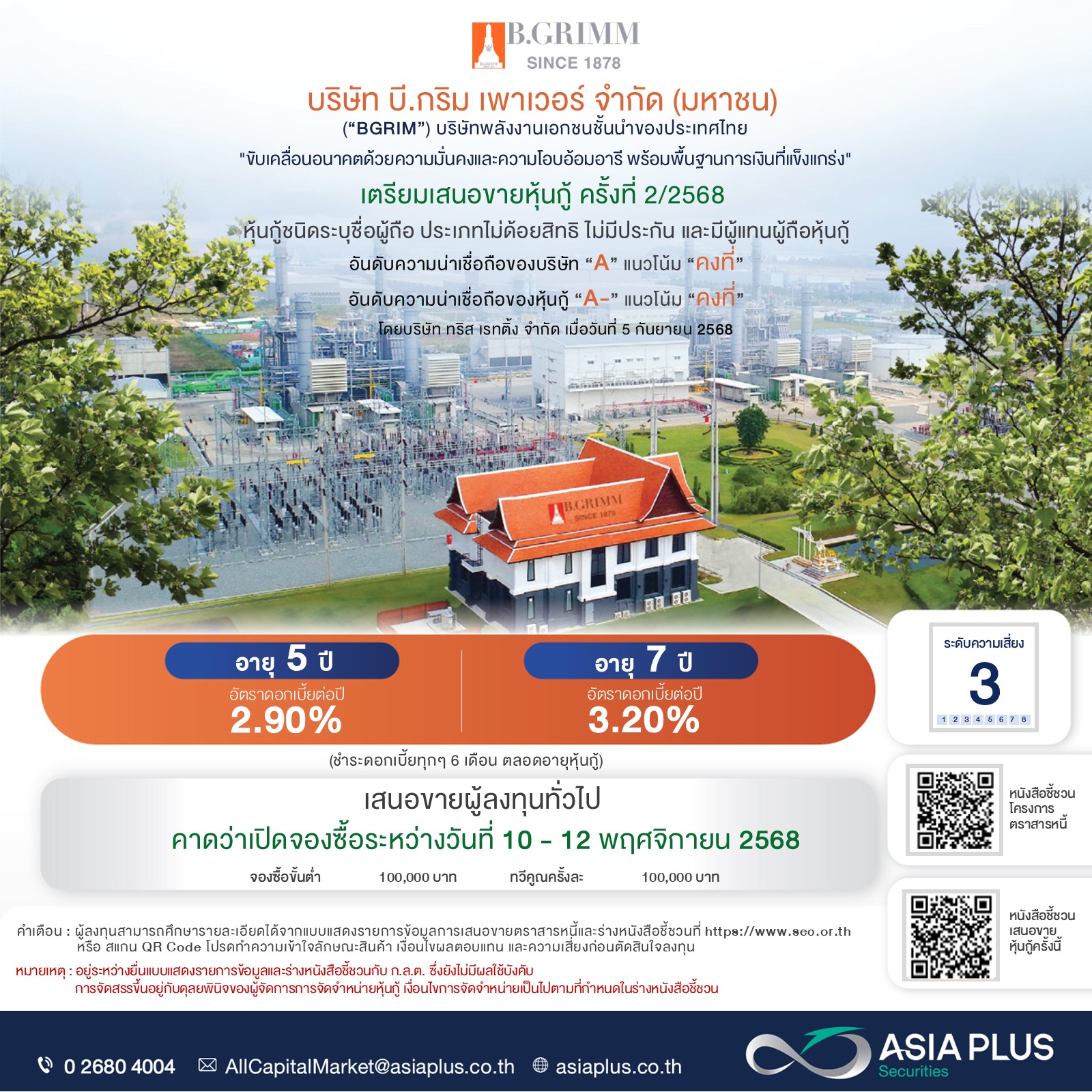 เปิดจองหุ้นกู้ บริษัท บี.กริม เพาเวอร์ จำกัด (มหาชน) - BGRIM