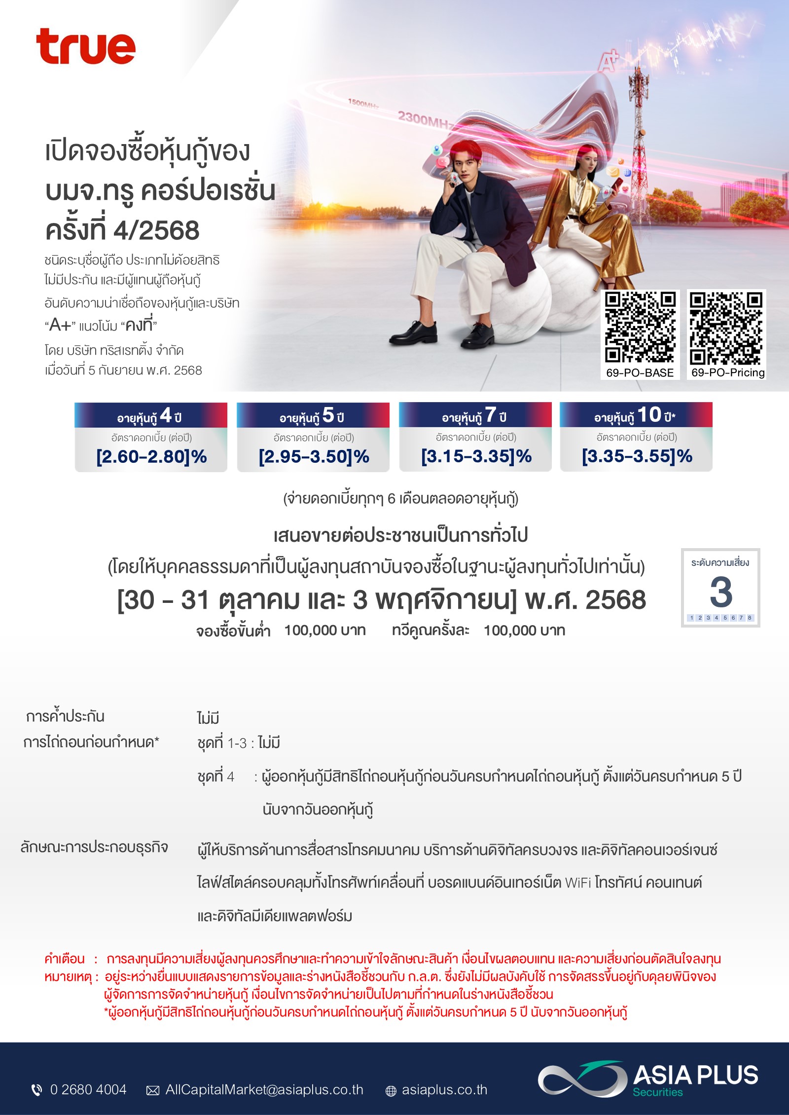 เปิดจองหุ้นกู้ บริษัท ทรู คอร์ปอเรชั่น จำกัด (มหาชน) - TRUE